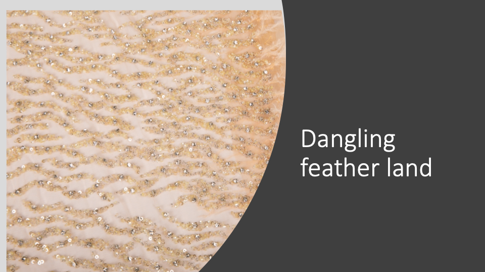 A delicate blend of faux feathers and dainty beads against a backdrop of light peach.
